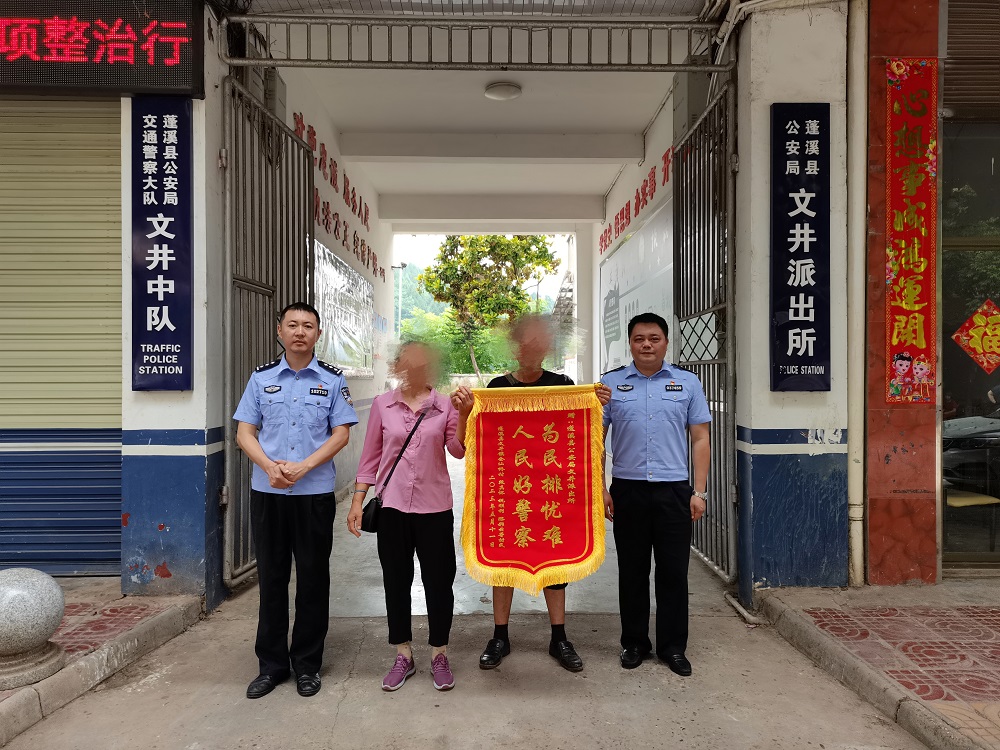 6月20日上午,文井镇会仙桥村几位村民将一面绣有“为民排忧难,人民好警察”的锦旗送到了文井派出所民警手中,再次表达了对民警的感激之情!