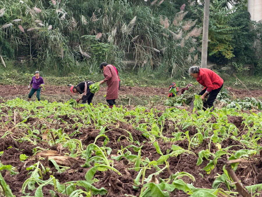 深秋时节,寒意渐浓,蓬溪县金桥镇果园村的良选种植家庭农场里却是一派热火朝天的忙碌景象。10月27日,记者走进农场看到,田间地头随处可见农户们弯腰劳作的身影,他们正趁着晴好天气抓紧种植榨菜,翻土、栽苗、浇水,每一个环节都有条不紊。