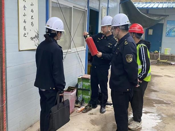 在有限空间作业安全方面,执法人员检查了通风措施的落实情况和作业人员防护用品的配备,针对现场安全监管工作,要求施工方明确监管人员职责,不放过任何一个安全隐患。在消防安全监管上,执法人员对施工现场内的食堂区、宿舍区以及临时用房等人员密集和火灾易发区域进行了重点核查。详细检查消防设施的配置数量是否符合现行规范,用火用电管理是否合规。针对检查中发现的部分消防设备数量配置不足的问题,执法人员当场下达整改要求,责令相关责任方立即补足消防设备,以确保在紧急情况下能够有效应对火灾事故,同时要求禁止私拉乱接电线,杜绝因火灾风险。