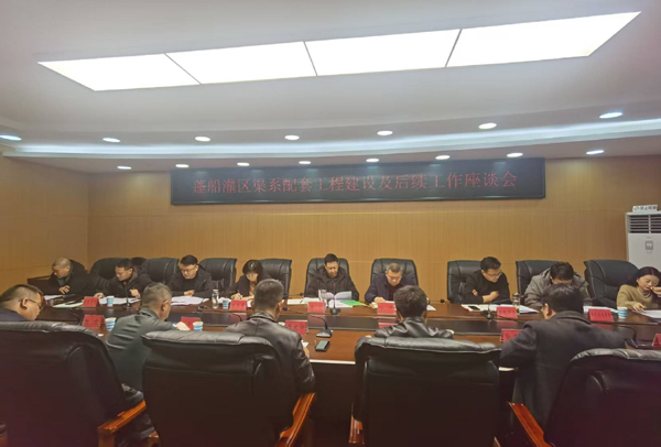 近日,为加快推进蓬船灌区工程渠系配套项目,副县长、现代农业示范区党工委书记潘宁在县政府工作会议室组织召开蓬船灌区工程建设及后续工作座谈会,县人大常委会副主任提名人选、省蓬灌局局长郭伟、县政协副主席蒋亚藜出席会议,会议邀请了大禹设计集团参加,县政府办公室、县水利局、县发展改革局、县财政局、县自然资源和规划局、县农业农村局相关负责人参加座谈会。