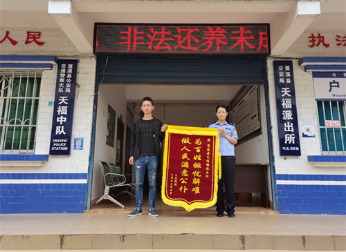 2023年5月26日,王某将一面印有“为百姓排忧解难,做人民满意公仆”的锦旗送到了天福派出所民警手中,表达了对派出所为其养女王某然补录户籍的感激之情。