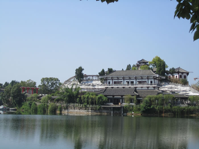 书圣坛:位于景区入口处,建设面积1500平方米,投资额1500万元,主要内容有环岛书画墙、环岛景观回廊、书画主题小品和功能亭馆等,与书圣堂构成观景空间。