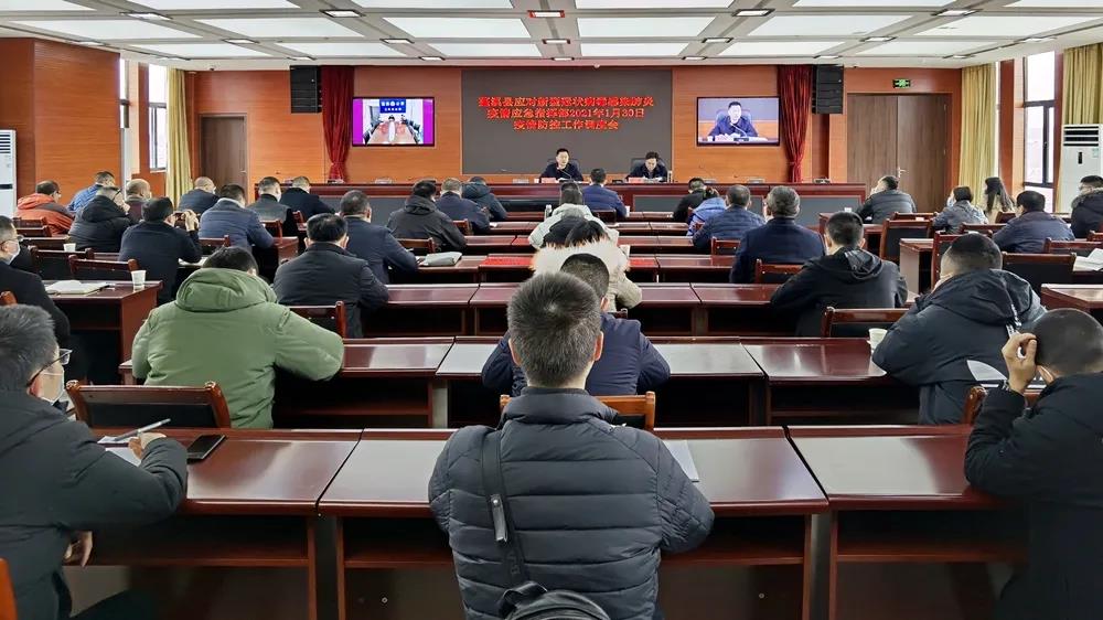 1月30日,县应对新冠肺炎疫情应急指挥部以视频会议的方式召开疫情防控工作调度会。县委常委、县委办主任、县总工会主席王松、副县长张萌在主会场出席会议。相关部门和各乡镇负责人在分会场参加会议。