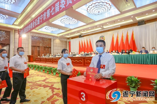 在闭幕会前举行的选举大会上,勾中进、刘建军委员当选为政协遂宁市第七届委员会副主席,吴廷友委员当选为政协遂宁市第七届委员会秘书长,邓茂、田碧华、陈俊、陈玉清、易志昂、罗杨委员当选为政协遂宁市第七届委员会常务委员。