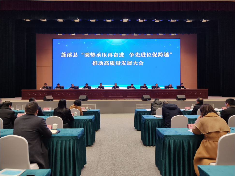 2月15日上午,蓬溪县召开“乘势承压再奋进 争先进位促跨越”推动高质量发展大会。县委书记黄亚军,县委副书记、县长吴红彬,县人大常委会主任文勇,县政协主席杨军,县委副书记、现代农业示范区党工委书记王松,县领导唐志强、唐明星、邓涛、刘国伟、鲜艳君、田小宇等出席会议。