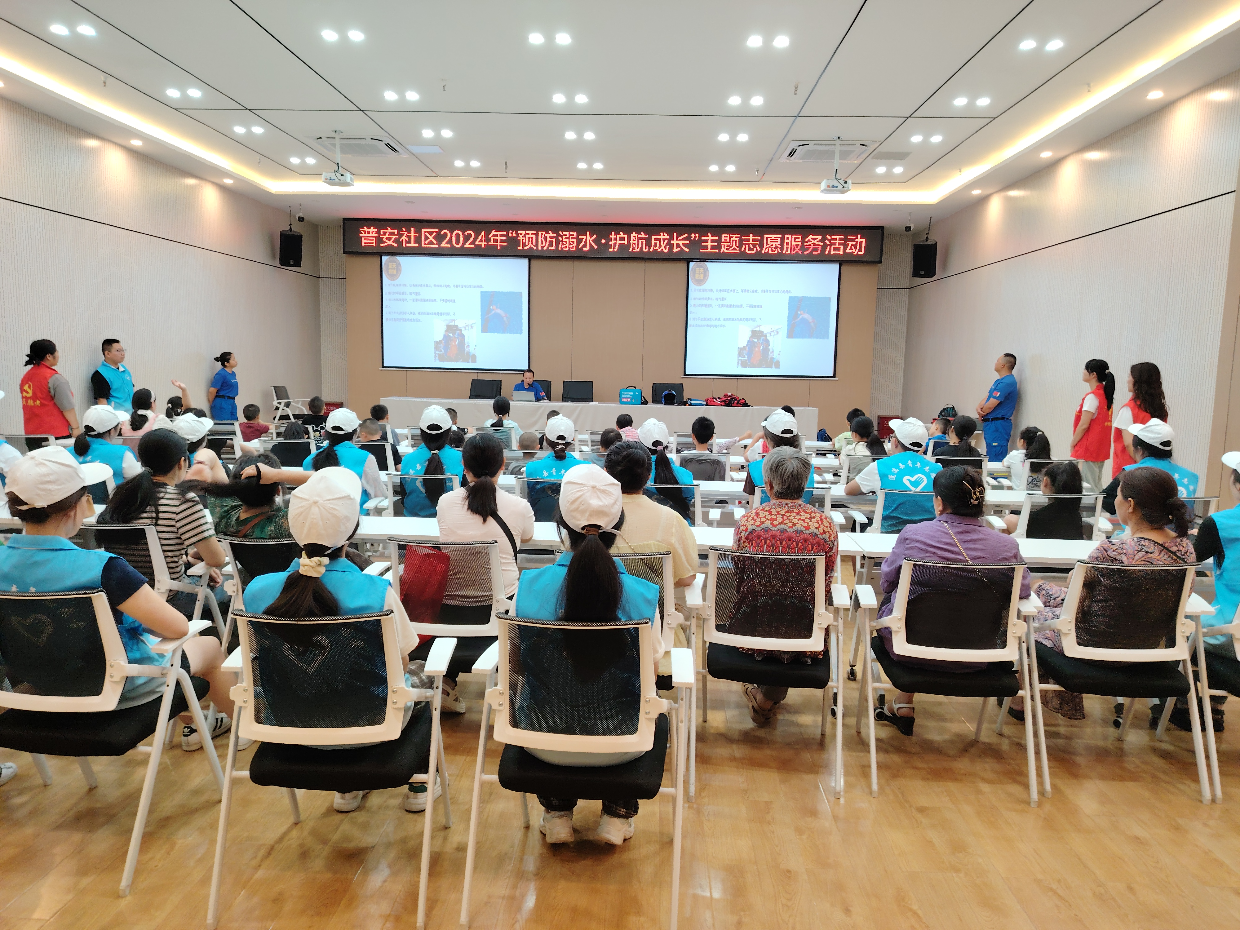 为了孩子们能更好地接受专业的安全知识教育,普安社区邀请遂宁市蓝天救援队队员为辖区青少年儿童开设“预防溺水·护航成长”安全讲座。通过图片展示、视频观看、现场讲解、模拟救援实操等多种形式开展防溺水安全的教育活动。将防溺水安全渗透在青少年的生活中,根植于青少年的心中。
