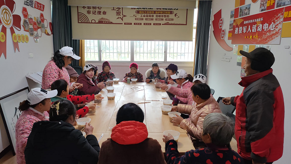 腊八节吃腊八粥寓意着来年五谷丰登、万事“粥”全,因水饺形式古时金元宝,寓意着财富和祝福。一大早,社区日间照料中心就开始忙碌起来,巾帼志愿者们分工合作,一一将提前泡好的花生、红豆、黄豆等豆类食材仔细洗净,把腊肉、萝卜、胡萝卜等食材切成小块,做好熬制准备,另一边则忙碌着和面、调馅、擀皮、包饺子。