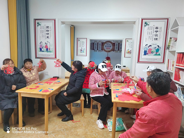 在“妇女微家”,社区剪纸爱好者围坐一起,一张张红纸被剪成“福、春、吉祥如意、灯笼”等各种“年味”十足的图案,一幅幅惟妙惟肖的剪纸作品在手中精彩呈现。