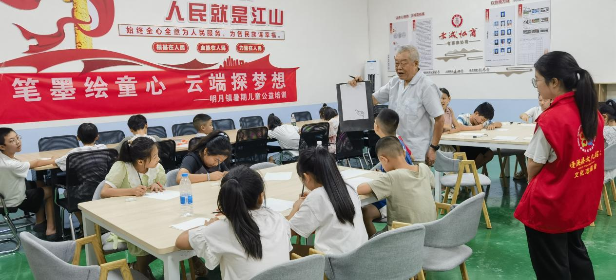 近日,明月镇“笔墨绘童心 云端探梦想”暑期儿童公益绘画培训圆满结束。为期五天的课程里,30 余名儿童在综合文化站开启艺术之旅。