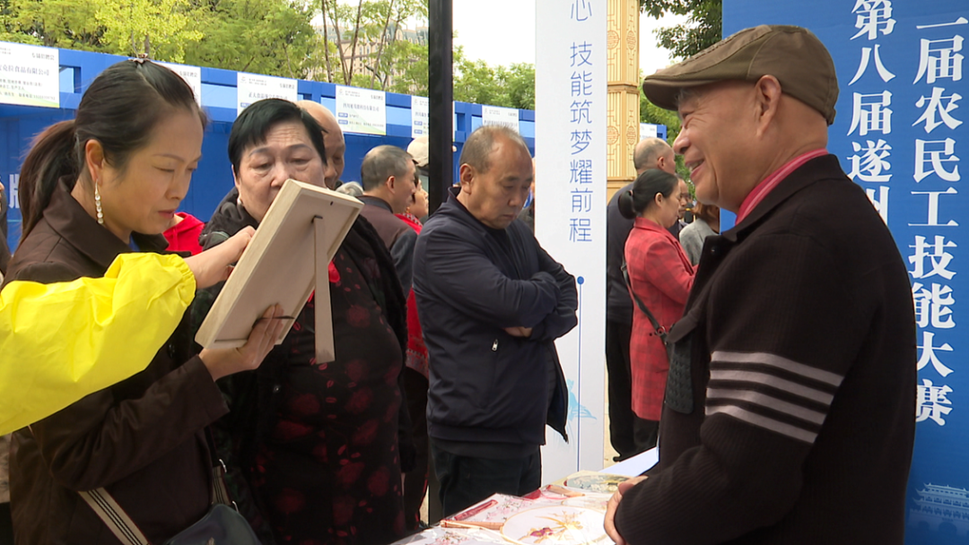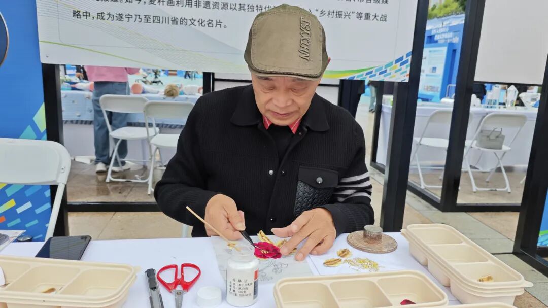 走出课堂,柏波更致力于推动麦秆画“走出”蓬溪,登上更广阔的舞台。10月21日,他受邀在射洪市举办的“遂宁市第八届遂州技能人才暨第十二届农民工技能大赛”现场进行展销。展台前,一幅幅以麦秆为原料创作的画作格外引人注目,麦秆的自然肌理与细腻的剪贴、烫制工艺相融合,呈现出独特的艺术质感,吸引众多群众驻足欣赏、询问细节。