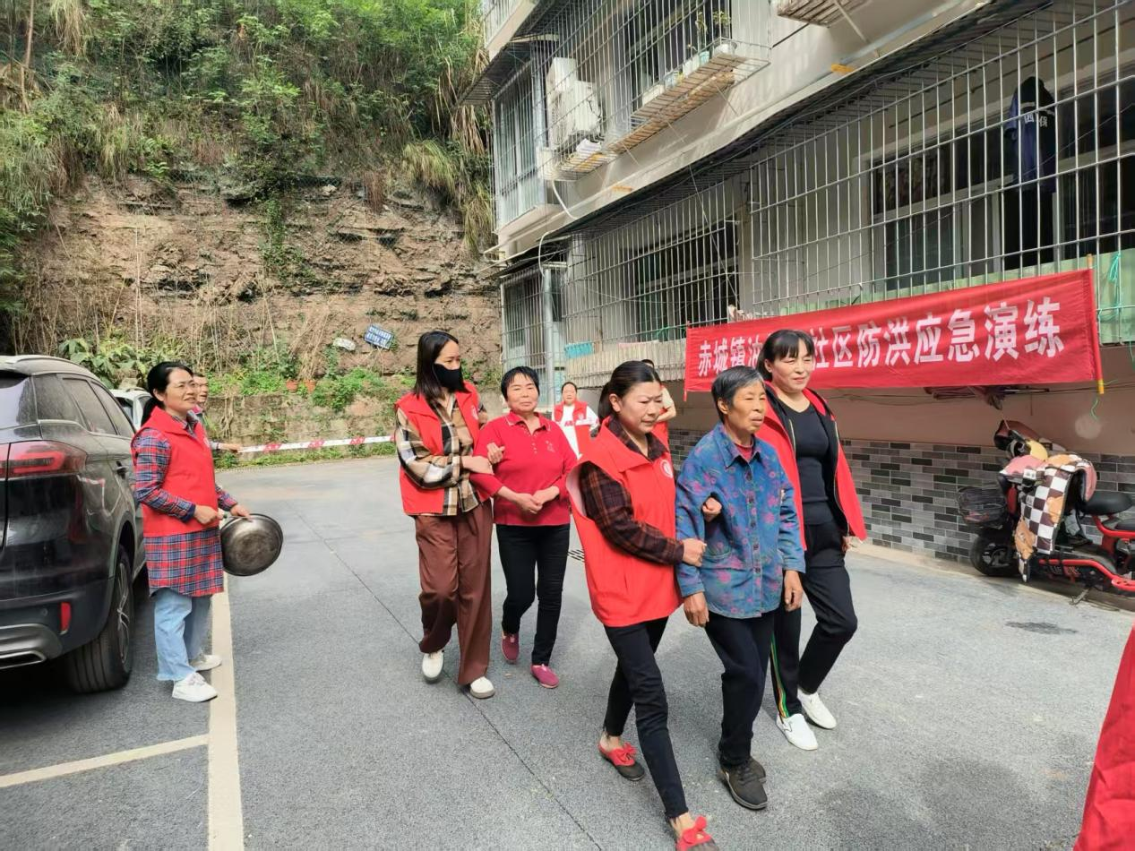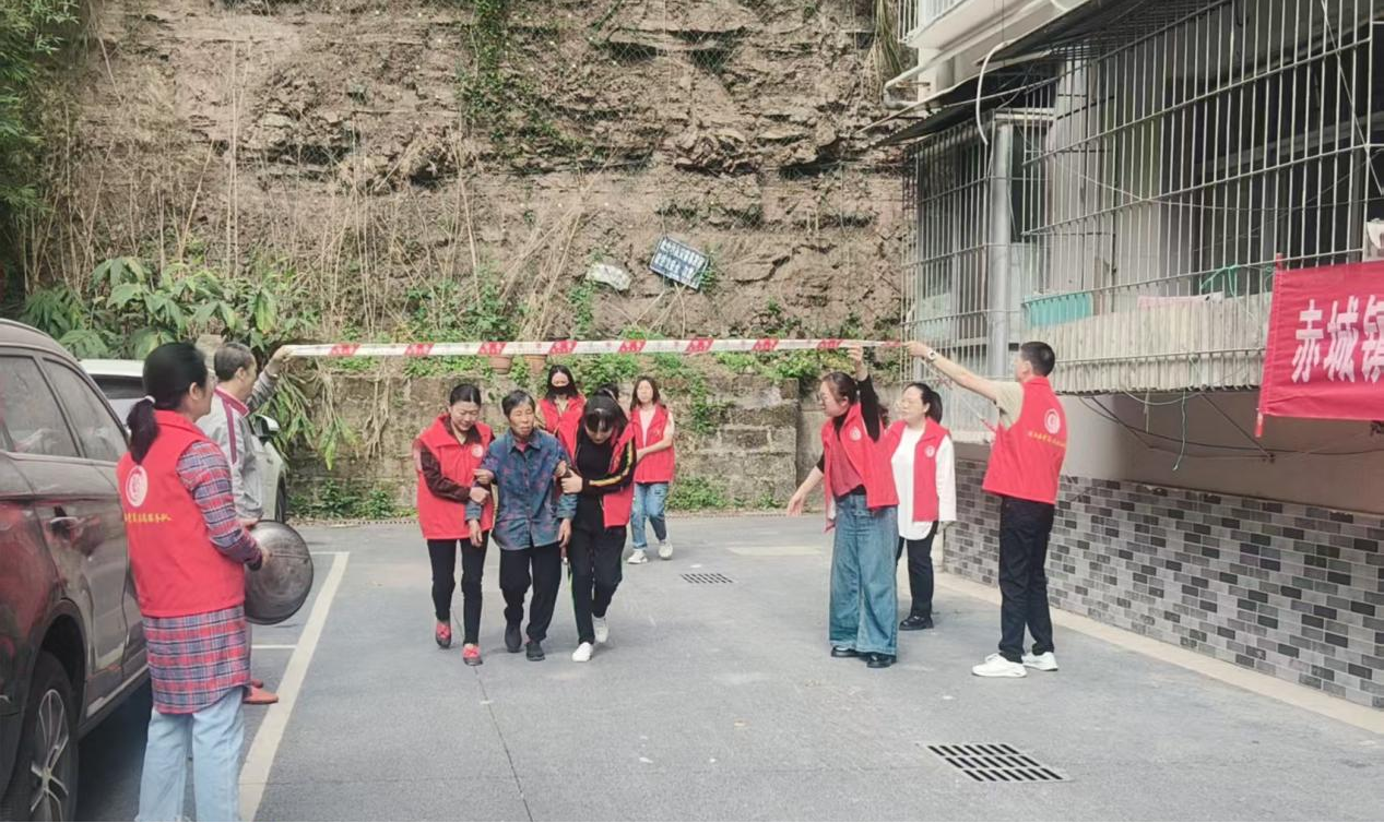 演练过程中,全体人员分工明确、行动迅速。面对模拟“决堤”险情,抢险队员争分夺秒装填沙袋,筑起临时挡水墙;在转移群众时,工作人员耐心安抚群众情绪,帮助老人、儿童及行动不便者安全撤离。整个演练环节衔接紧密、环环相扣,仅用时1小时便完成35名“受困群众”的安全转移和安置工作,充分展现了社区应急队伍的高效执行力。