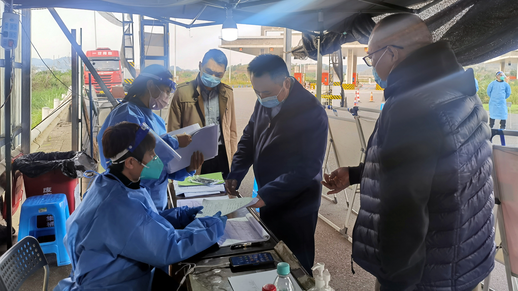 吴红彬一行先后到普安街道、赤城镇、蓬溪经开区和金桥镇,督导中央“二十条措施”落实情况,实地查看了交通卡口防疫和居家隔离人员隔离管控工作,详细了解各点位具体情况,听取我县目前疫情防控工作汇报。吴红彬强调,要坚持“外防输入、内防反弹”总策略和“动态清零”总方针不动摇,严格落实第九版防控方案和中央“二十条措施”,进一步优化工作措施,加强精准防控,坚决守牢“第一关口”。要聚焦高风险区来(返)蓬人员,时刻关注周边地区疫情新变化,优化调整防控措施,严格管理好居家隔离人员,认真落实全员核酸筛查工作,将各种风险管控到位,做到及时发现处置疫情。要做好居家隔离人员的服务保障工作,帮助他们解决隔离中遇到的问题和困难。要强化“卡口”人员调配、培训和后勤保障,确保用心、安心工作。