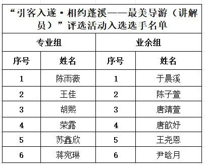 接下来,我们将在蓬溪文旅抖音官方平台发布选手的风采展示视频,欢迎大家点赞转发,我们将根据评审分数及视频点赞量、转发量评选出本次活动的一、二、三等奖。