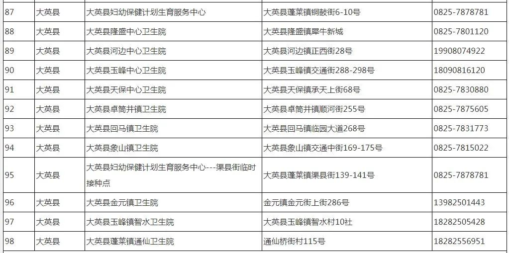 以上接种点均可通过四川天府健康通进行新冠病毒疫苗接种预约登记+查询服务