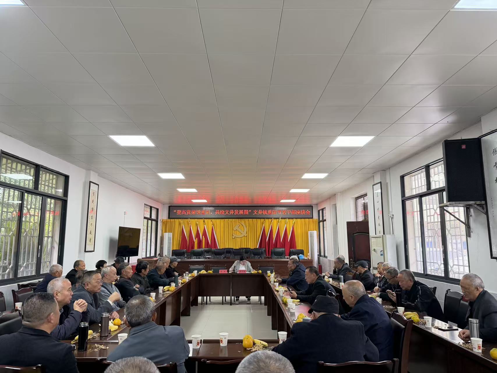 金秋送爽,丹桂飘香,为弘扬尊老爱老传统美德,文井镇以“登高赏菊话重阳,共绘文井发展图”为主题,开展重阳节老干部座谈会,40余名退休老干部齐聚一堂,共庆佳节、共话发展。会议由镇组织委员蒲丽娟同志主持。