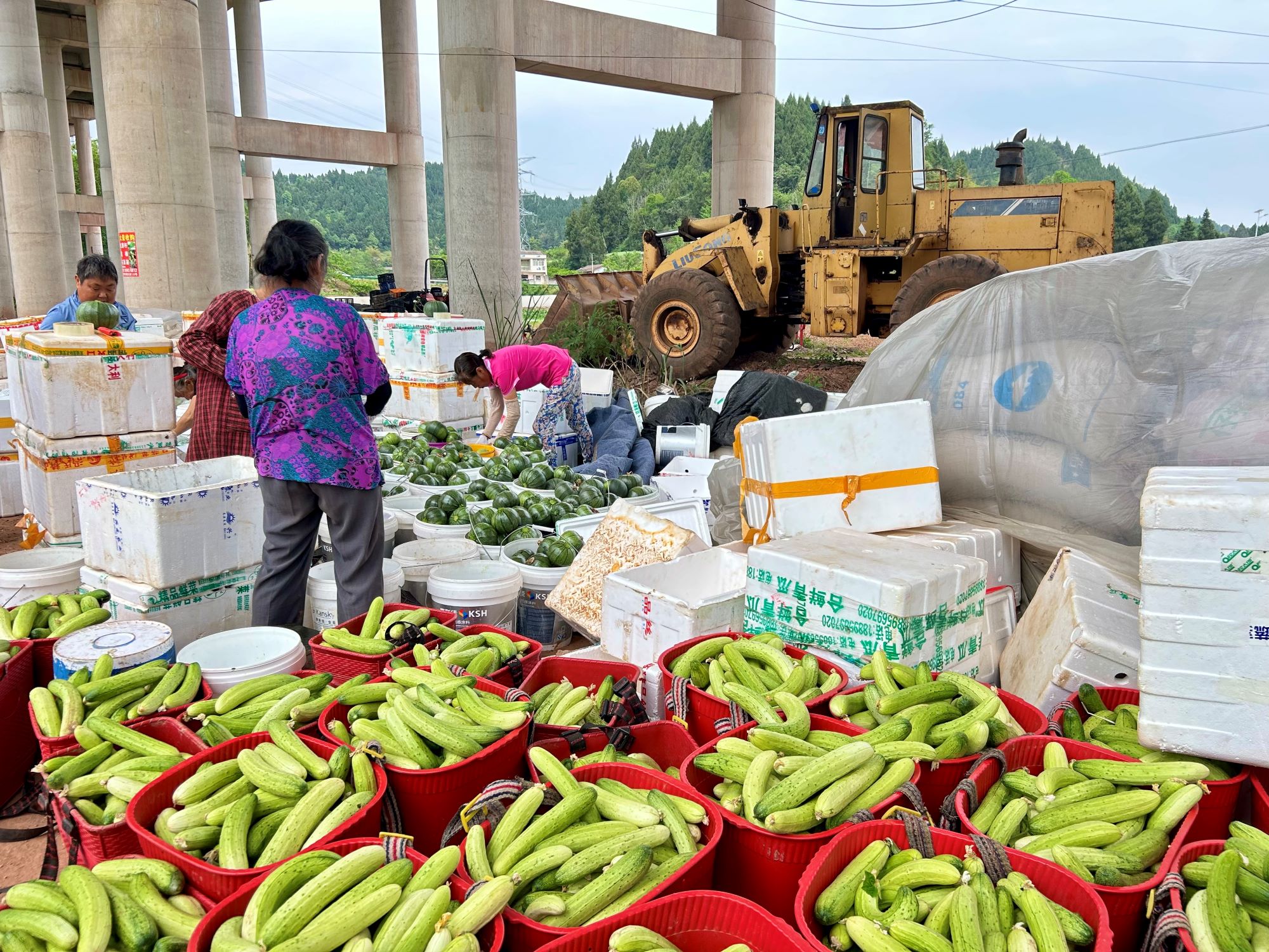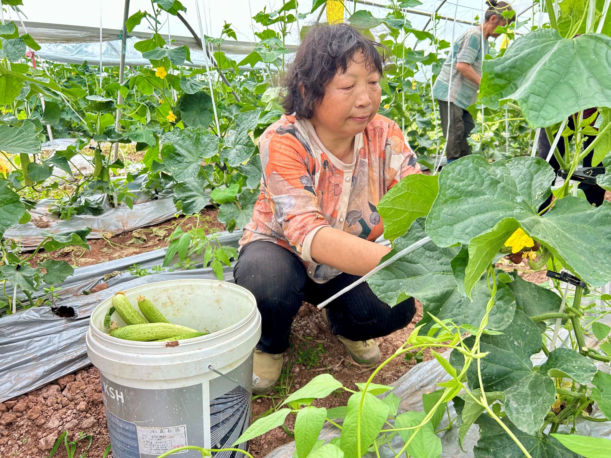 四月的田野孕育着希望。4月22日,记者走进蓬溪县金桥镇果园村的良选种植家庭农场蔬菜大棚看到,翠绿的黄瓜挂满藤蔓、饱满的三月瓜压弯枝头,农户们穿梭其间,熟练地进行采摘、装框、打包,现场一派丰收的喜人景象。