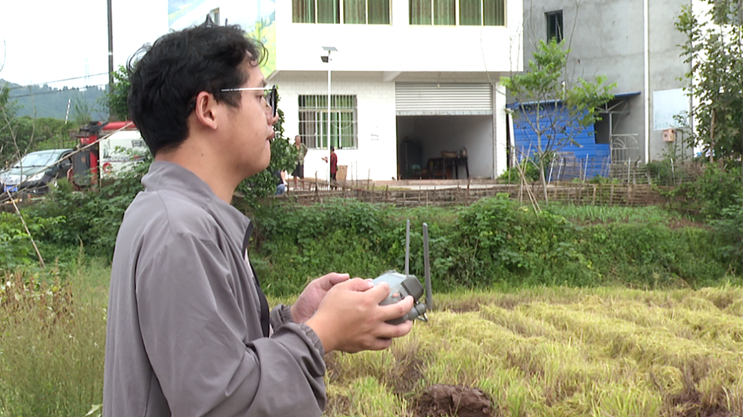 10月9日清晨,晨光微露,蓬溪县凿饮种植家庭农场负责人李坤凌已开始忙碌。他熟练地调试农用无人机,准备执行当天首次任务——利用无人机风力吹落稻叶上的露水,为机械化收割创造最佳条件。