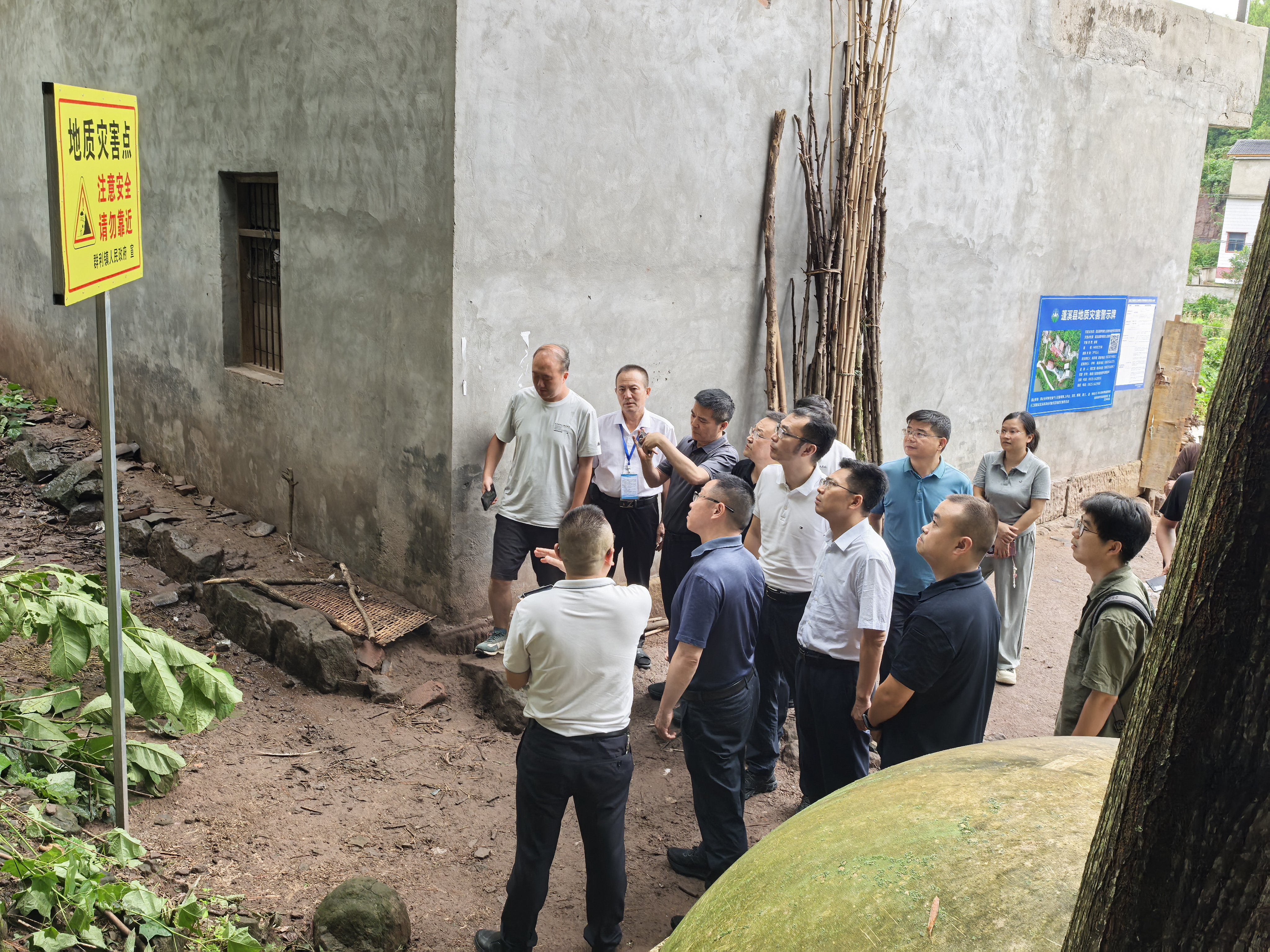 2025年8月11日下午,四川省自然资源厅党组成员、副厅长邓斌率队到蓬溪县群利镇开展地质灾害隐患防治工作专项调研。随行调研的有省自然资源厅调查监测处处长吕建平、省自然资源厅地灾防治处一级调研员袁志军、省修防院应急处置室副主任罗鸿,以及遂宁市副市长张韬、遂宁市自然资源和规划局局长杨韬、蓬溪县自然资源和规划局副局长段晓东等。调研组一行深入群利镇九龙坡村唐先贵等农户屋后崩塌点现场,详细察看了崩塌点地形地貌、裂缝发展及周边群众居住安全状况,认真听取了基层防灾工作汇报以及走访群众,并就隐患排查、监测预警、应急处置和群众避险转移等关键环节提出了指导性意见,强调要始终坚持人民至上、生命至上,切实筑牢地质灾害防治安全防线。