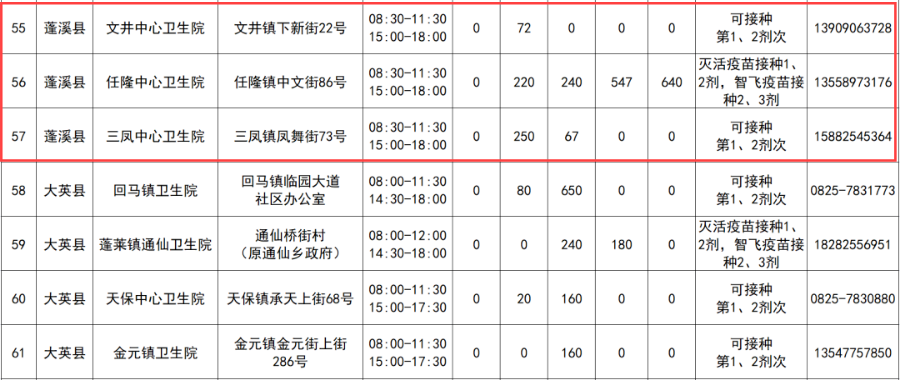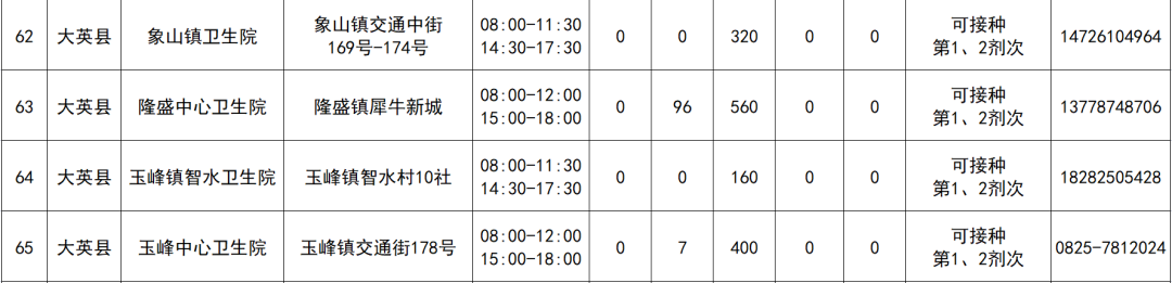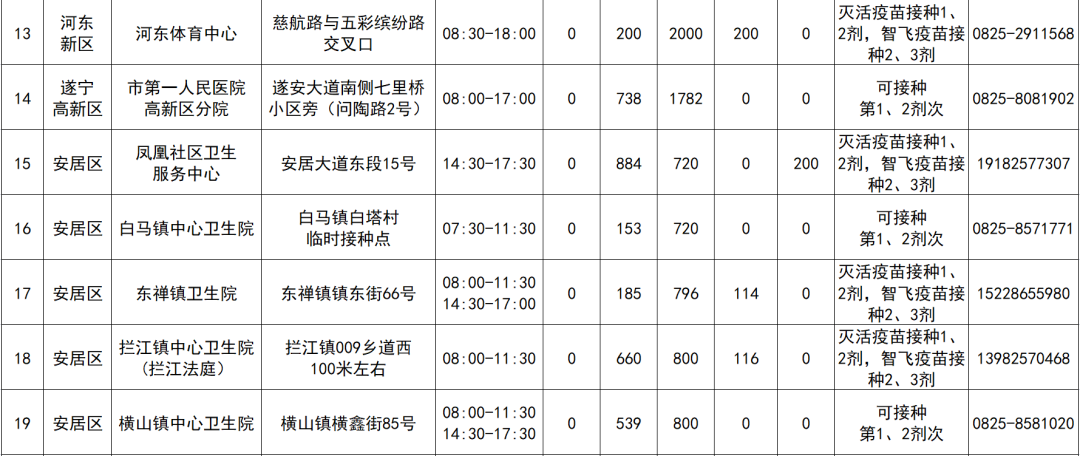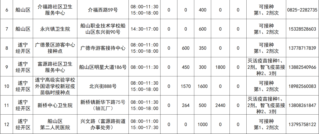 为方便群众接种,现将遂宁市8月19日新冠病毒疫苗接种点安排公示如下,本批次疫苗主要用于辖区符合接种条件的人群接种。