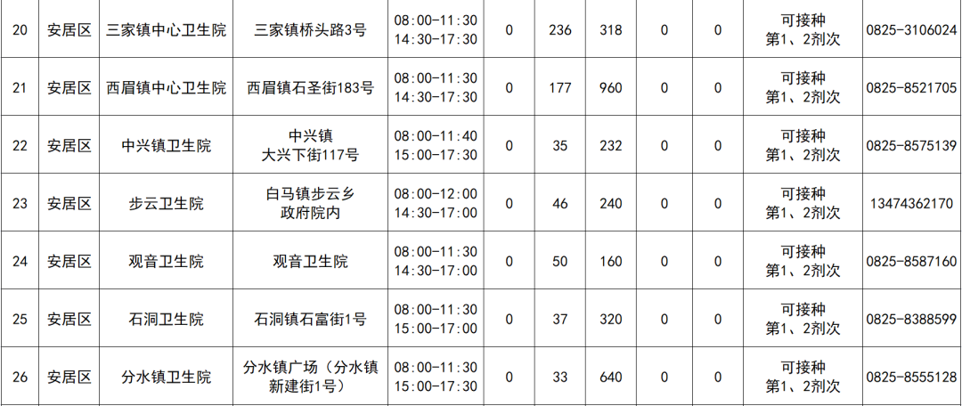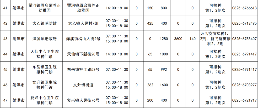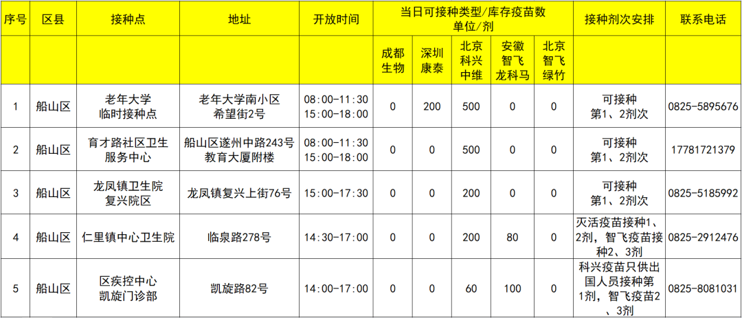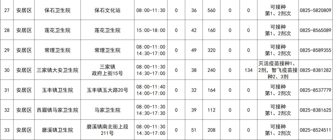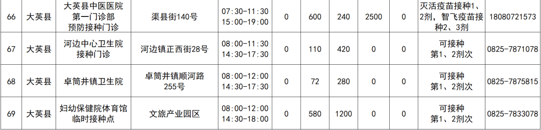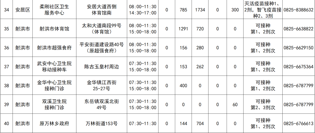 注:各接种点接种剂次、接种时间、疫苗数量等,可能会根据实际情况有所调整,请大家提前电话咨询了解。