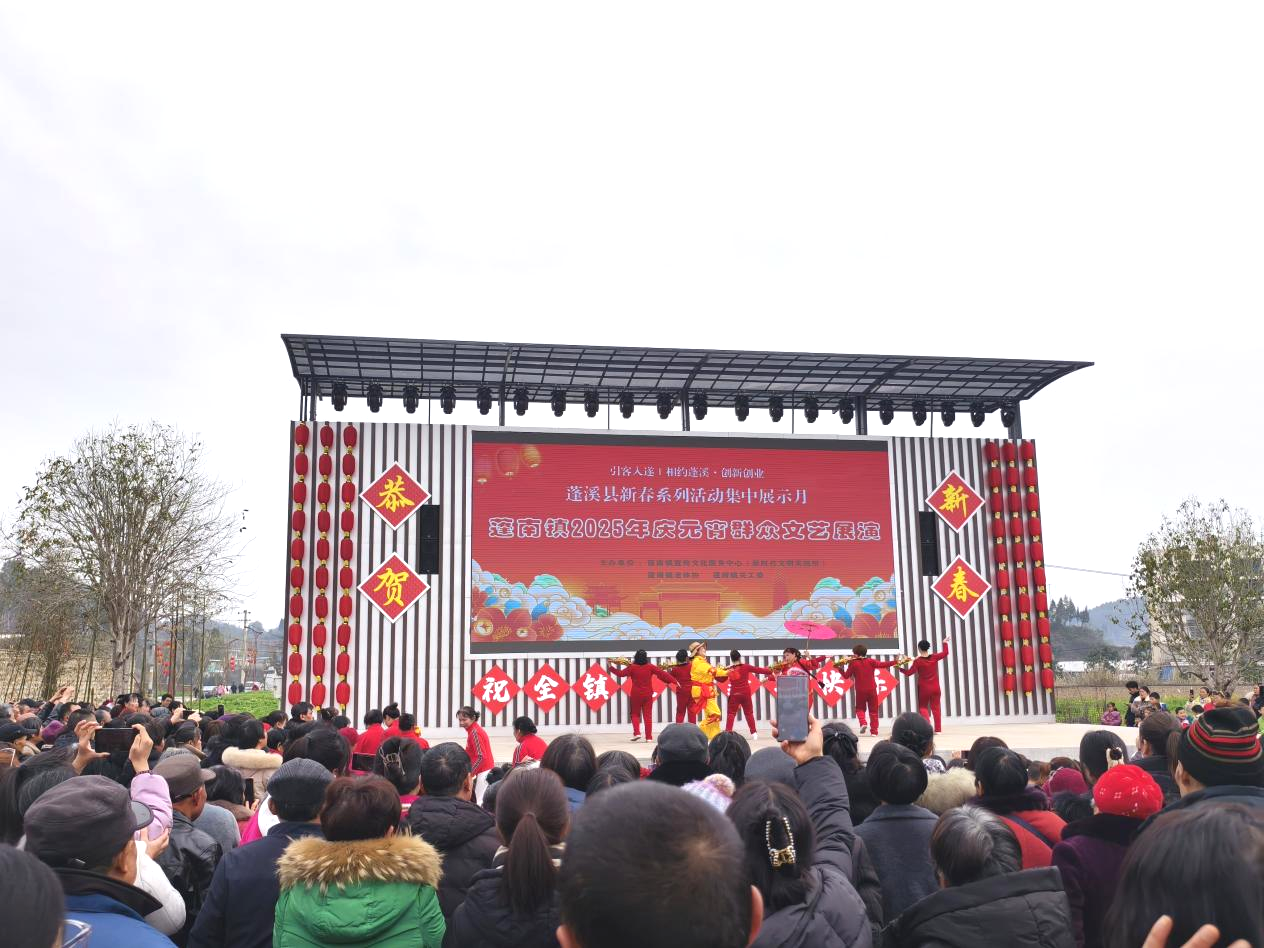 2月11日,蓬南镇文化广场上人声鼎沸,一场别开生面的元宵节群众文艺展演活动在此隆重举行。身着节日盛装的表演者们,手持彩绸,踏着铿锵有力的音乐,在舞台上翩翩起舞。除了传统的歌舞表演,还有武术、自编自演的唱词、猜灯谜等,精彩的节目赢得现场观众阵阵掌声。