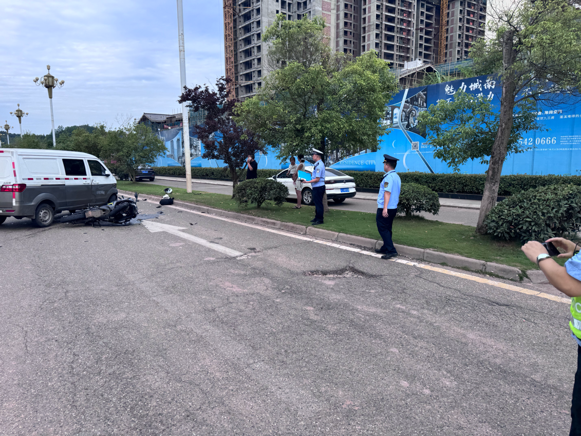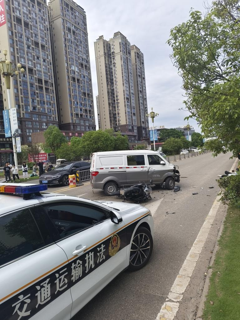 2025年6月21日(周六)上午9时许,蓬溪县交通运输综合行政执法大队执法人员巡查至普安大道时,遇一起交通事故。一辆小型面包车在实施掉头操作过程中,与正常直行的摩托车发生碰撞,致使摩托车驾驶员受伤。