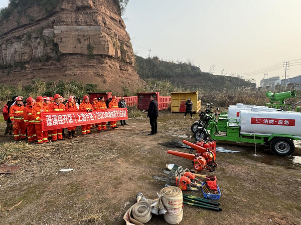 为深入学习贯彻习近平总书记关于森林草原防灭火工作重要指示精神,根据蓬溪县森林防灭火指挥部办公室《转发<四川省森林草原防灭火指挥部办公室关于开展“百县千镇万村(企)”森林草原火灾应急处置演练的通知>的通知》的要求,四川蓬溪经开区(上游片区)于2025年1月3日在川隆塑胶对面空地(碉堡坡)开展四川蓬溪经开区2025年森林防灭火应急演练。