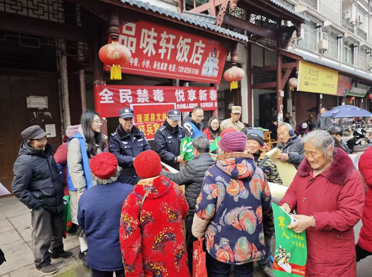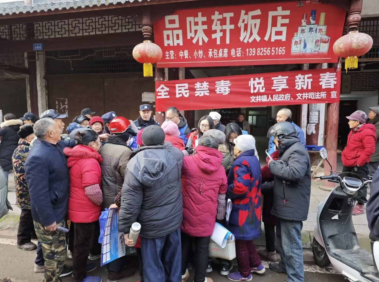 岁末年初,外出务工人员陆续返乡。为切实强化禁毒宣传工作成效,提升返乡人员对毒品危害的认知水平与防范能力,1月9日文井镇政府联合镇直各部门、司法所、派出所在利用赶集日文峰社区开展“全民禁毒 贺享新春”为主题外出务工人员返乡禁毒宣传活动。