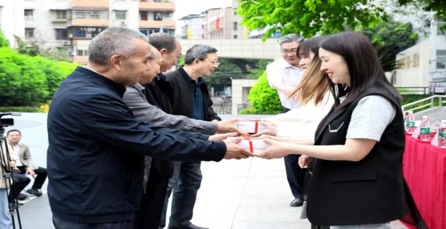 活动对张问陶的成长经历、仕途生涯,以及诗歌创作风格的形成与发展详细介绍,并深入剖析了张问陶诗歌“性灵洒脱、意境深远、情感真挚”的独特魅力,带领在场师生穿越时空,领略清代诗坛巨匠的风采,让大家对张问陶及其诗歌有了更为全面、深刻的认识。启动仪式上四川师范大学巴蜀文化研究中心研究员、张问陶家族文化研究专家胡传淮,蓬溪县问陶诗社、蓬溪县蓬山诗词学会、蓬溪县楹联学会等蓬溪诗联团体的专家代表向学校交付了《张问陶诗歌选读》诵读手册。