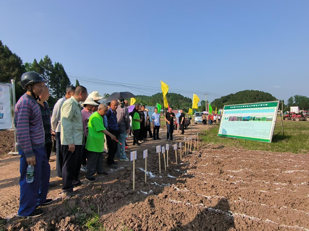县农业农村局农技副站长廖奎开展大豆玉米带状复合种植技术培训。