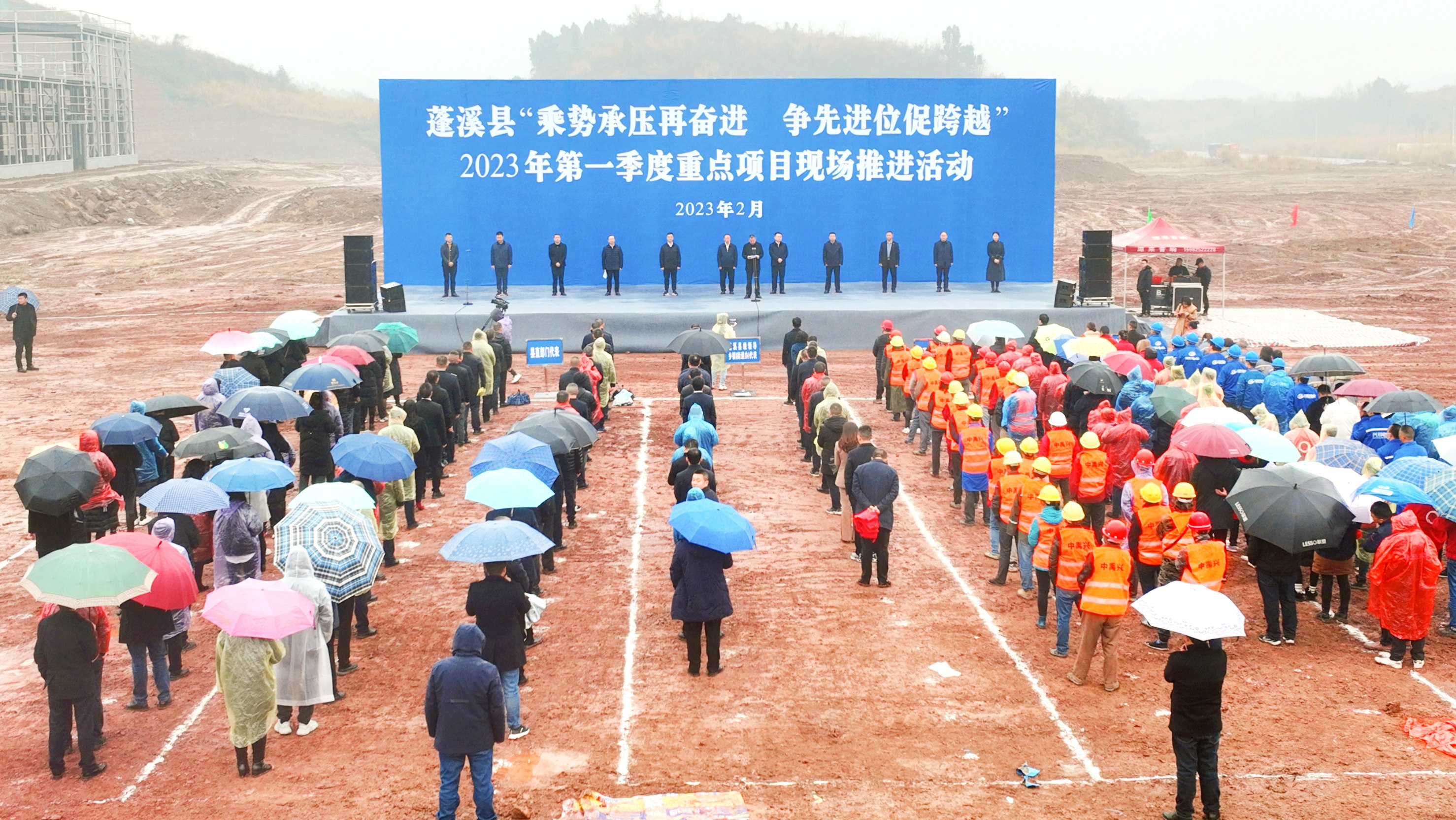 2月21日,蓬溪县举行2023年第一季度重点项目现场推进暨项目拉练活动,在拉练中找差距,在竞进中促跨越,确保实现一季度“开门红”。县委书记黄亚军,县委副书记、县长吴红彬,县人大常委会主任文勇,县委常委唐志强、赵锋、邓涛、刘国伟、鲜艳君、田小宇等在家县领导,县政协主席杨军,四川营盛线缆制造有限公司董事长陈长学,相关部门以及乡镇(街道)主要负责人参加活动。