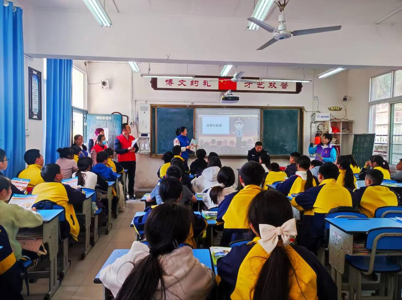 近日,赤城镇西街社区党委联合县司法所、赤城镇禁毒办开展“禁毒宣传、反校园欺凌、预防侵害”进校园主题活动。活动中,工作人员为在场师生发放各类宣传资料200余份,详细为学生们讲解禁毒知识、校园欺凌案例以及校园欺凌的危害,告诫学生们一定要远离毒品、珍爱生命,正确认识校园欺凌并学会运用法律来保护自己。同时,活动现场设置有奖问答、学生集体宣誓等环节,进一步增强校园师生禁毒、安全和法律意识,切实保护青少年群体健康成长。