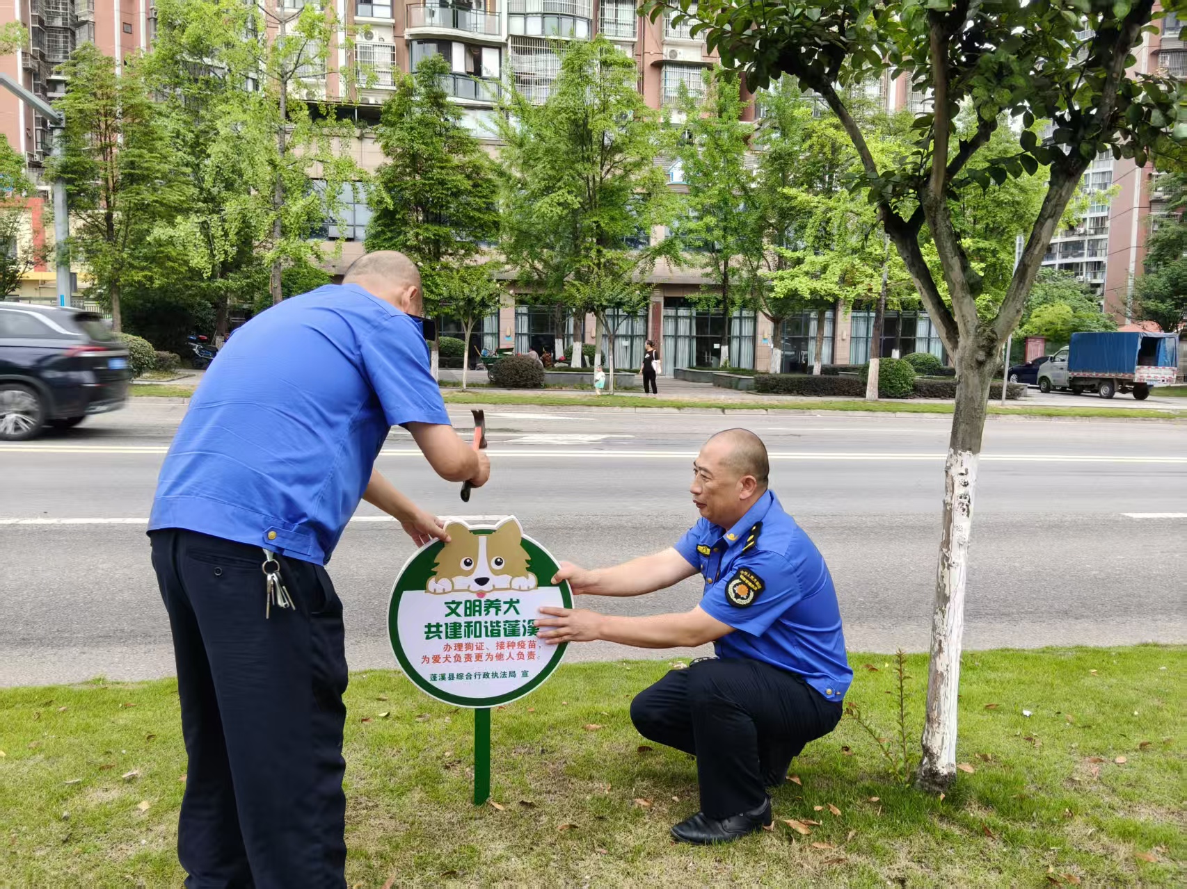 奏响文明养犬“三重奏”,共谱人宠和谐新篇章。(1)倡导文明理念“细无声”。在政府广场、市民中心、继勋公园、香溪路、赤城湖、白塔公园等遛犬高频区域,醒目树立200余块文明养犬标识牌,将“依法、文明、科学”养犬的理念,如春风化雨般浸润市民生活点滴,于无声处唤醒文明自觉,时刻提醒大家共建共享和谐蓬溪。(2)吹响部门联动“集结号”。联合县公安局、县市场监督管理局、县农业农村局等部门力量,在社区公告栏、市民休闲等重点场所张贴《关于加强蓬溪县城区犬只管理的通告》,聚焦安全隐患突出区域,联合公安开展流浪犬专项捕捉行动,捕捉流浪犬9只,处理犬只投诉16起。(3)宣传服务“零距离”。开展“文明养犬进家门”暖心行动,发放《文明养犬,从我做起》宣传单200余份,面对面解读养犬法规政策要点,确保政策要求“声”入人心,并赠送实用犬链,实现“教育宣传+文明工具”同步送达,共绘人宠和谐共处新画卷。