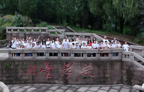登高悟孝道,传承中华美德。清晨,营员们自高峰山东寨门拾级而上。在孝道广场,大家聆听“二十四孝”故事讲解,感悟“百善孝为先”的传统美德。行至山门广场,孩子们整齐列队,以青山绿水为背景拍摄“童心向党”主题合影,以昂扬姿态抒发对党和祖国的热爱。随后,营员们挑战“八卦迷宫”,在迂回曲折的路径中锻炼团队协作能力。于老子坐像前,志愿者结合《道德经》名句阐释道家文化精髓,让传统文化浸润童心。