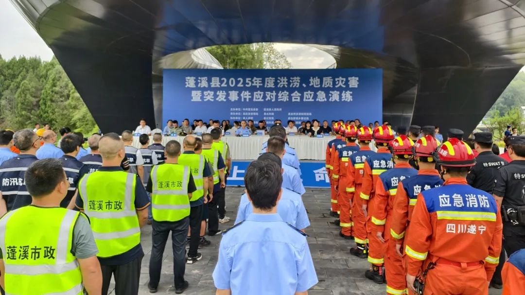 6月27日,蓬溪举行2025年度洪涝、地质灾害暨突发事件应对综合应急演练。市政府副秘书长、市应急局局长杨奎南,县委书记黄亚军,县委副书记、县长吴红彬出席活动。