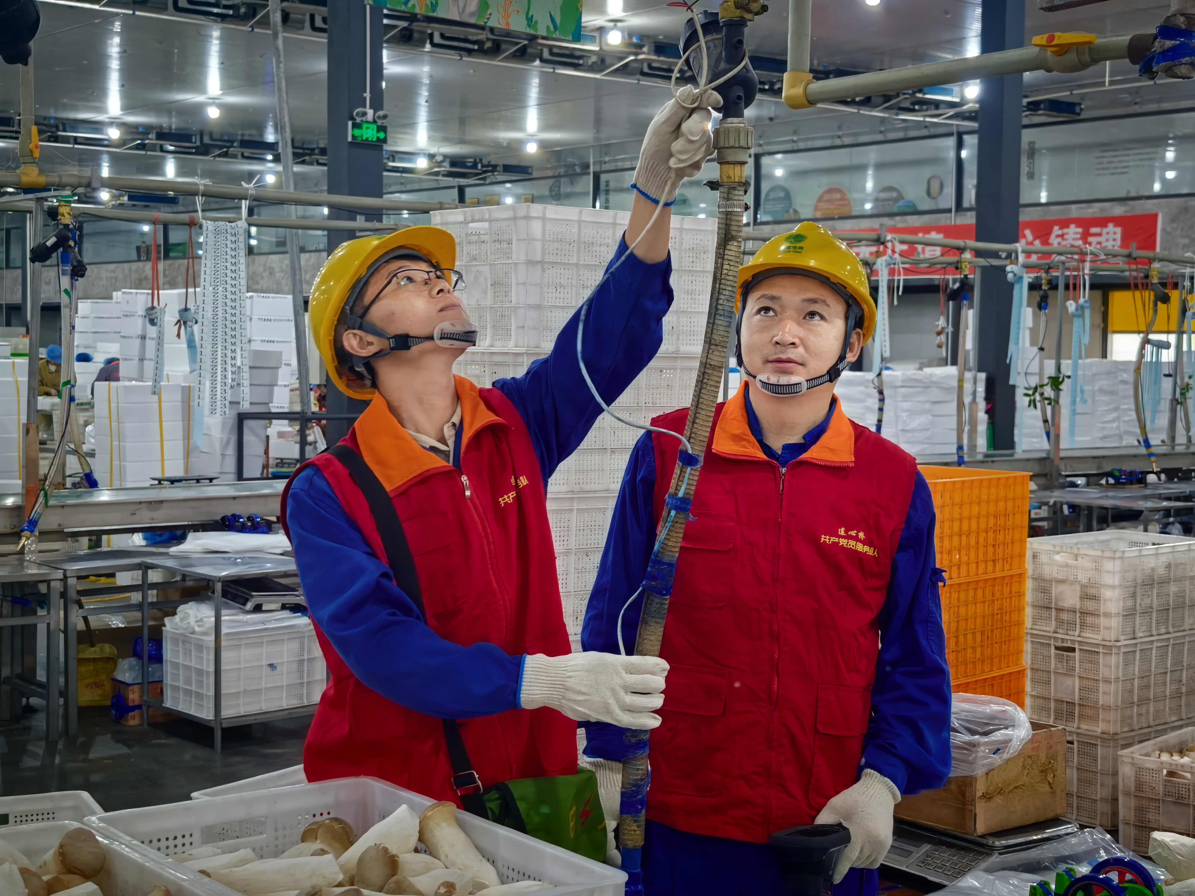 “节假日期间,企业连续生产,用电安全至关重要。供电公司主动上门,帮我们检查线路和设备,宣讲安全知识,这份贴心服务让我们完全没有后顾之忧地抓生产、赶订单,真是给我们吃了一颗‘定心丸’!”琪瑛菌业负责人对工作人员节日保障服务赞不绝口。