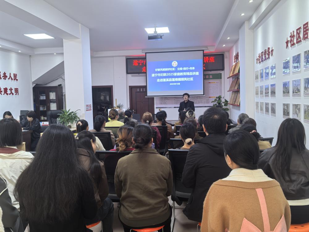 10月23日,一堂主题为“好家风赋能好社区”的家庭教育精品讲座在蓬溪县蓬南镇顺凤社区开讲,将优质的家庭教育服务送到了居民“家门口”。