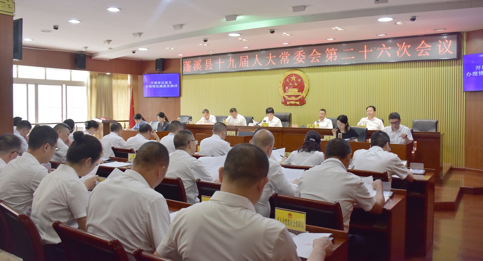 6月12日,蓬溪县十九届人大常委会第二十六次会议召开。县人大常委会主任杨帆,县人大常委会副主任肖伟、张吉华、刘定华、卢栌出席会议,县委常委、常务副县长、统战部部长鲜艳君,副县长敬平列席会议。