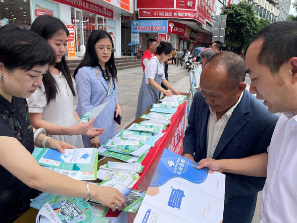 县水利局工作人员通过现场发放《遂宁市节约用水宣传手册》《公民节约用水行为规范》等宣传资料,向群众广泛科普节约用水及水资源保护相关知识,鼓励引导群众自觉参与爱水、节水、惜水行动,树立起节水意识,推动《节约用水条例》等法律法规有效实施。同时,县水利局通过在单位门口张贴“节能增效、焕新引领”的宣传海报,加大节能低碳的持续宣传,并在微信朋友圈发布信息,发动身边群众一起参与到活动中来。