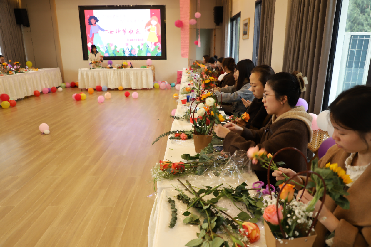 插花叙事,雅韵无边。本次活动还有插花环节,插花老师现场教学花艺技术,留白、修剪、取舍、花叶搭配,这些技巧不仅用于插花制作,也是对人生的启迪和生活的智慧。老师说:插花要简约,不要贪多,花太多太乱反而不好看。花要简约留白,人生也是如此。活动中,大家细心挑选喜欢的花卉,一边聆听老师讲解,一边调整着插花的角度和深度,在花香氤氲中,品味宁静与悠然。