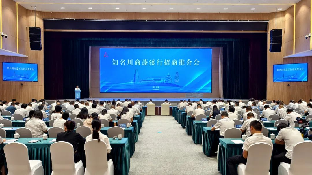 6月5日,蓬溪县召开知名川商蓬溪行招商推介会。各行业翘楚、企业家精英们欢聚一堂,共商项目合作、共话蓬溪发展。省经济合作局二级巡视员纪云文,市政协副主席胡铭超出席并讲话。县委书记黄亚军出席并致辞。省经济合作局国内合作处处长喻飞,省投资促进会负责人石本强,全国政协委员、四川恒和信律师事务所主任李正国,川商总会副会长、中京龙和实业集团董事长李映龙,川商总会党委委员、副秘书长何君秀,市经济合作局党组成员、副局长蒲慧,四川银行总行投资银行与战略客户部副总经理张贤,鹏辉力赫(天津)能源科技有限公司西南区域副总经理池蓉,四川中隆国科新能源科技有限责任公司董事长丁一,重庆御基科技发展有限公司董事长李洋,中建交通建设集团第四工程有限公司副总经理石磊,正黄集团有限公司董事长黄良出席。县委副书记、县长吴红彬主持。县人大常委会主任杨帆,县政协主席杨军,县委副书记张淀渲等全体在家县级领导出席会议。