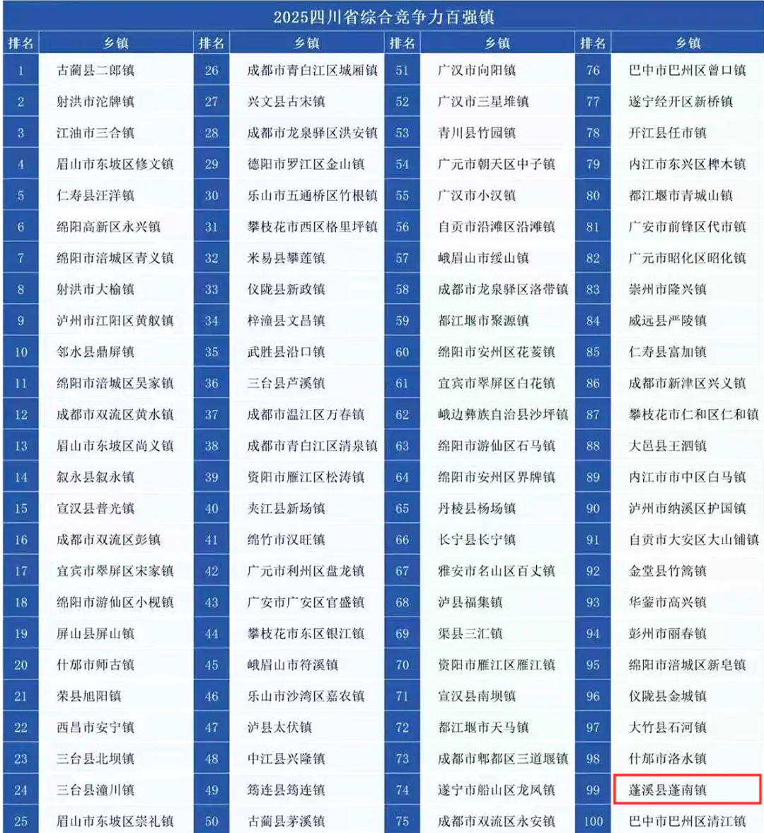 揭晓“2025四川省综合竞争力百强镇”名单