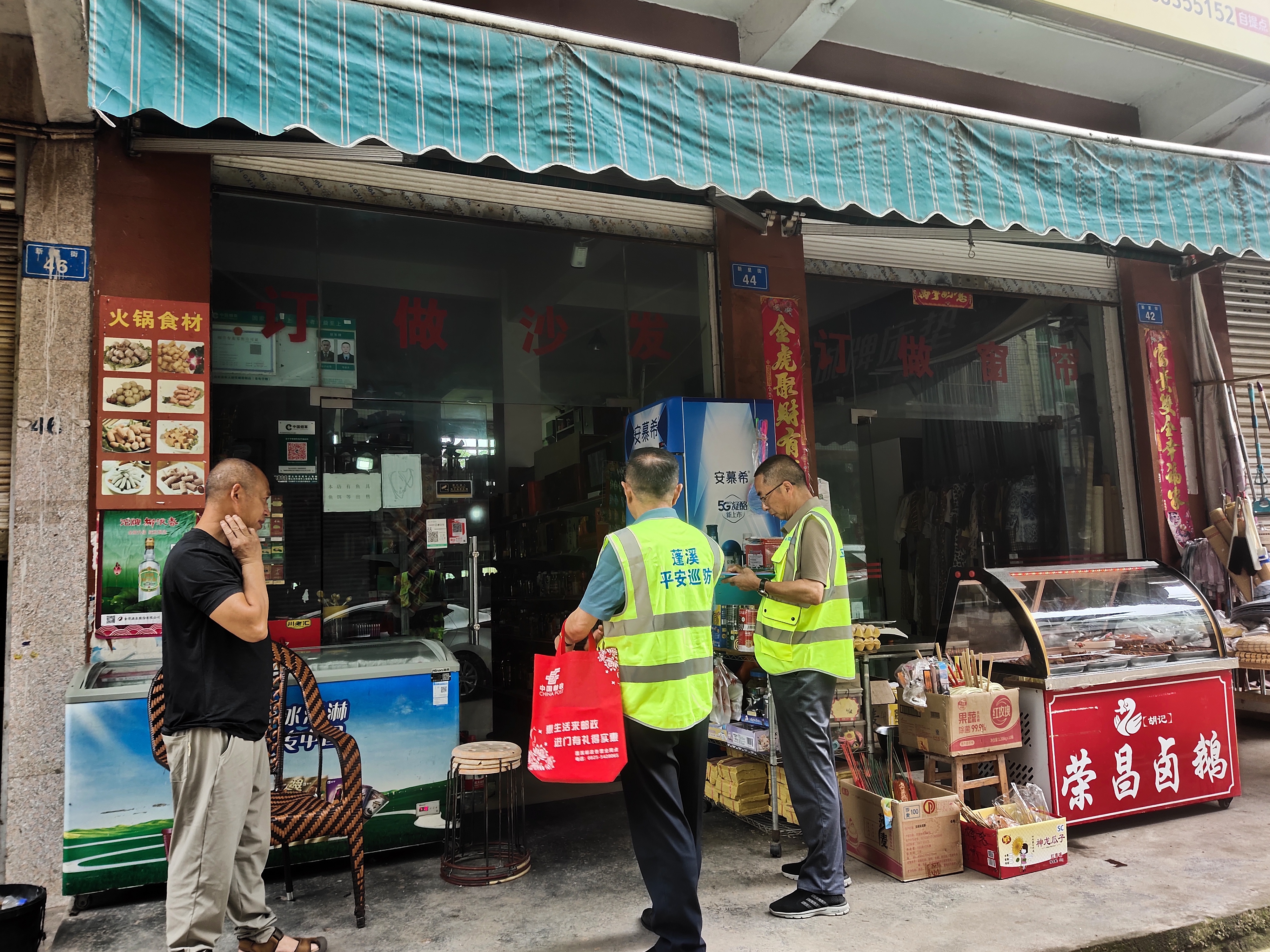 工作人员正在商铺进行安全宣传