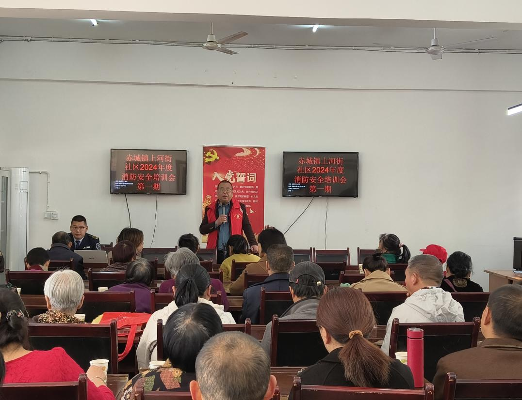 近日,赤城镇上河街社区党委联合遂宁市政安消防宣传中心开展“预防为主,生命至上”消防安全知识专题培训。培训课上,工作人员通过播放消防短片、安全事故案例,让广大居民认识到消防安全的重要性。同时,围绕着群众日常用火、用电、用气过程中常见的火灾隐患进行细心讲解,就各类火灾发生的原因、预防火灾的知识、火灾逃生基本手段等对大家进行专业培训,此举有效增强辖区群众消防安全意识,提高群众应急应变能力,筑牢社区安全屏障。