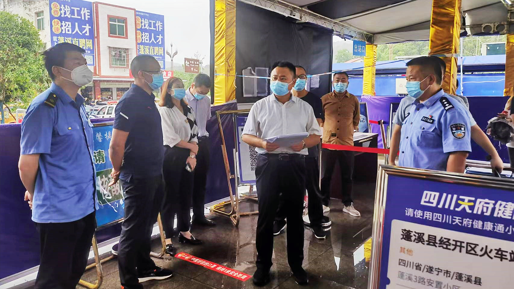 7月22日,县委副书记、县长吴红彬带领县政府办、县卫健局、县公安局、县发改局、蓬溪经开区等相关部门,到蓬溪县火车站检查督导疫情防控工作,副县长何亚杰参加检查。