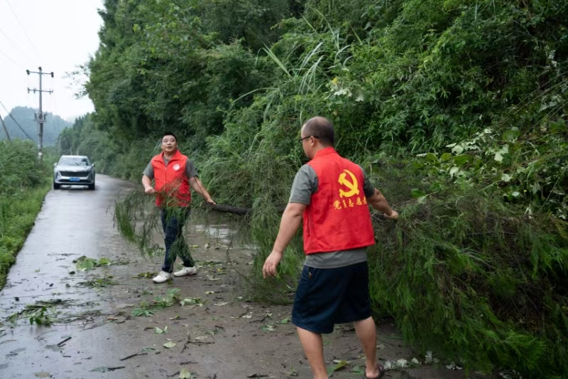 突出党员先锋,织密微网格生命防线。以党员为骨干,让党旗在防汛一线飘扬,用“红色身影”筑牢群众“安心堤坝”。红色冲锋抢在一线。各微网格内积极组建党员“红色冲锋队”,挺在防汛最前沿。顺江村猫鼻梁灾害点党员逐户敲门讲风险、扶老人、搬物资;永益村网格员冒雨照明前行,对照“一户一档”确认转移情况,对行动不便群众实行“一对一”帮扶,背老人、开私家车转运,确保“不落一户、不漏一人”。党群连心温暖民心。防汛期间,微网格员用“沾满泥水的裤腿、嘶哑的劝导声、彻夜不熄的手电光”,为群众释放出最可靠的“平安信号”。村民冉大爷朴实的感慨“看到‘红马甲’来了,心里就踏实!”,生动诠释了“微网格”在密切党群干群关系中的纽带作用,群众对基层治理的认同感与安全感持续升温。
