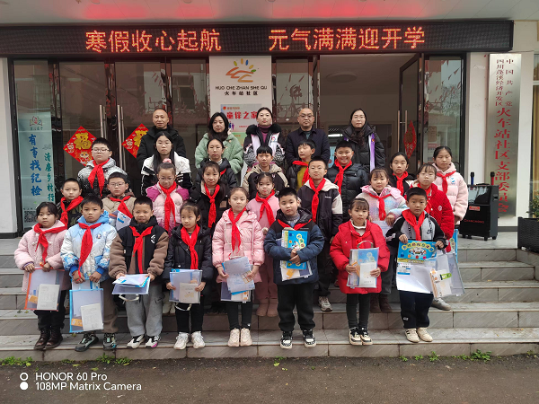 2月14日上午,蓬溪经开区火车站社区关工委、儿童(童伴)之家在新春开学前夕共同举办了“寒假收心启航、元气满满迎开学”主题活动。在庄严的升旗仪式中,少先队员行队礼、唱国歌,正式拉开活动序幕。