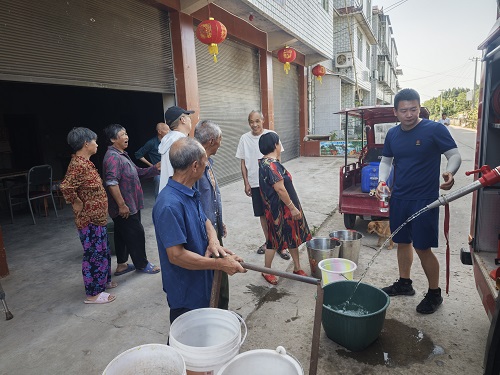 多措并举施策,保障供给。一方面调用机械设备紧急调水,并联系打井工作队为村组打井;另一方面针对严重缺水的村组,专门成立“党员送水服务队”,开展“送水上门”服务,切实做到“不漏一户、不落一人”。