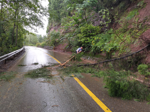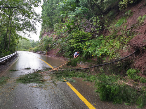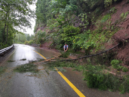 2021年9月16日14时许,蓬溪县公安局明月派出所民警周强在日常巡逻中发现射蓬路往蓬溪方向的路段有一棵柏树被暴风雨折断了树干。而倒下的树干几乎将整条车道完全挡住,使原本供双向车辆通行的道路临时变成了单行道,存在很大的安全隐患。