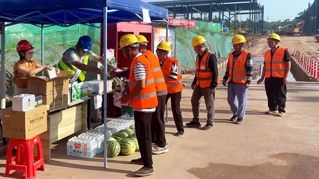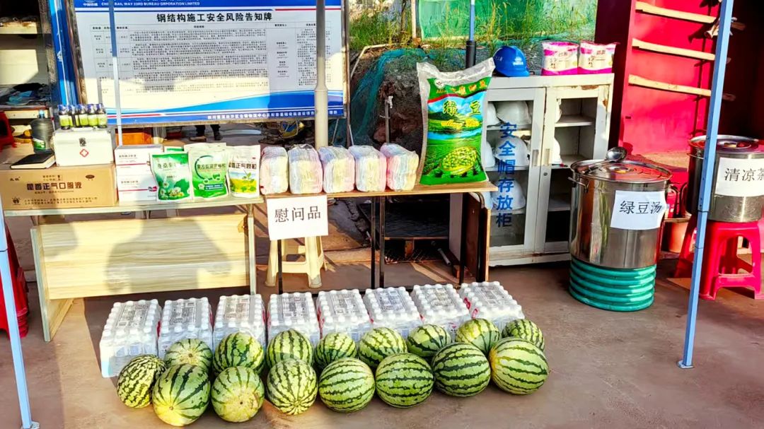 “为确保施工安全和劳动者权益,我们实行‘早开工、晚收工’模式,现场搭建了凉亭休息区,提供绿豆汤、水果及防暑药品,确保项目安全有序推进。”四川省金双成实业有限责任公司工程部部长任洪志告诉记者。
